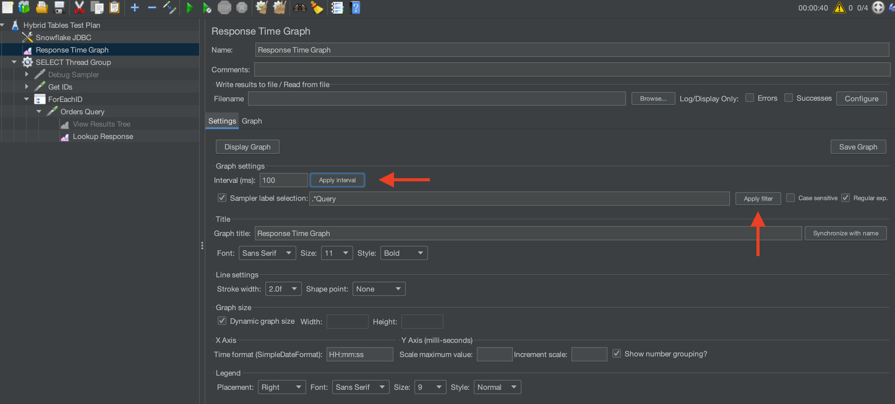 the Apply interval and Apply filter buttons before you visualize the graph: