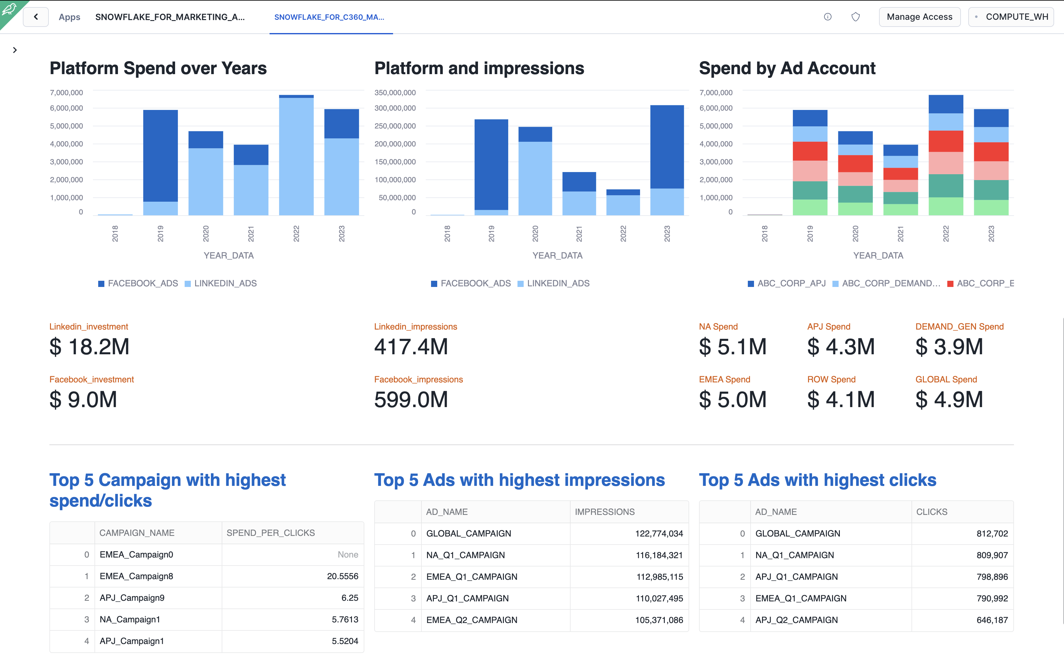 - How to build and deploy a Native Application using our preloaded sample Facebook ads, LinkedIn ad data, Salesforce and Google click analytics datasets.