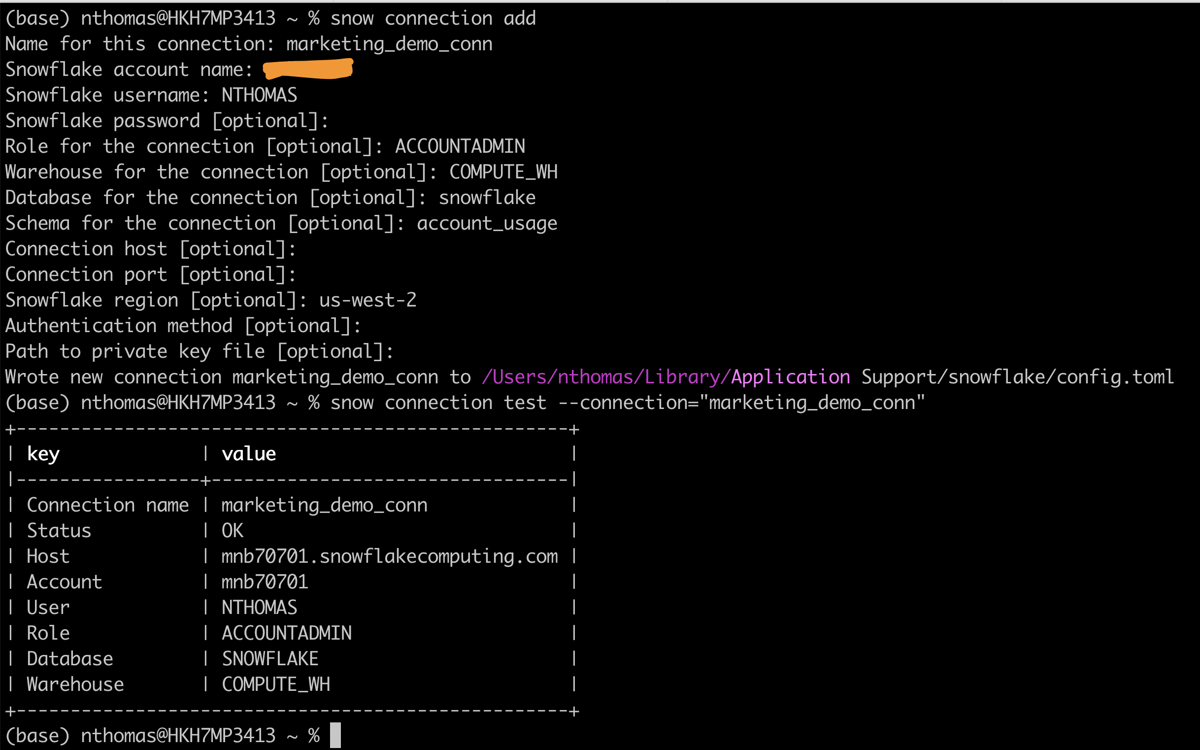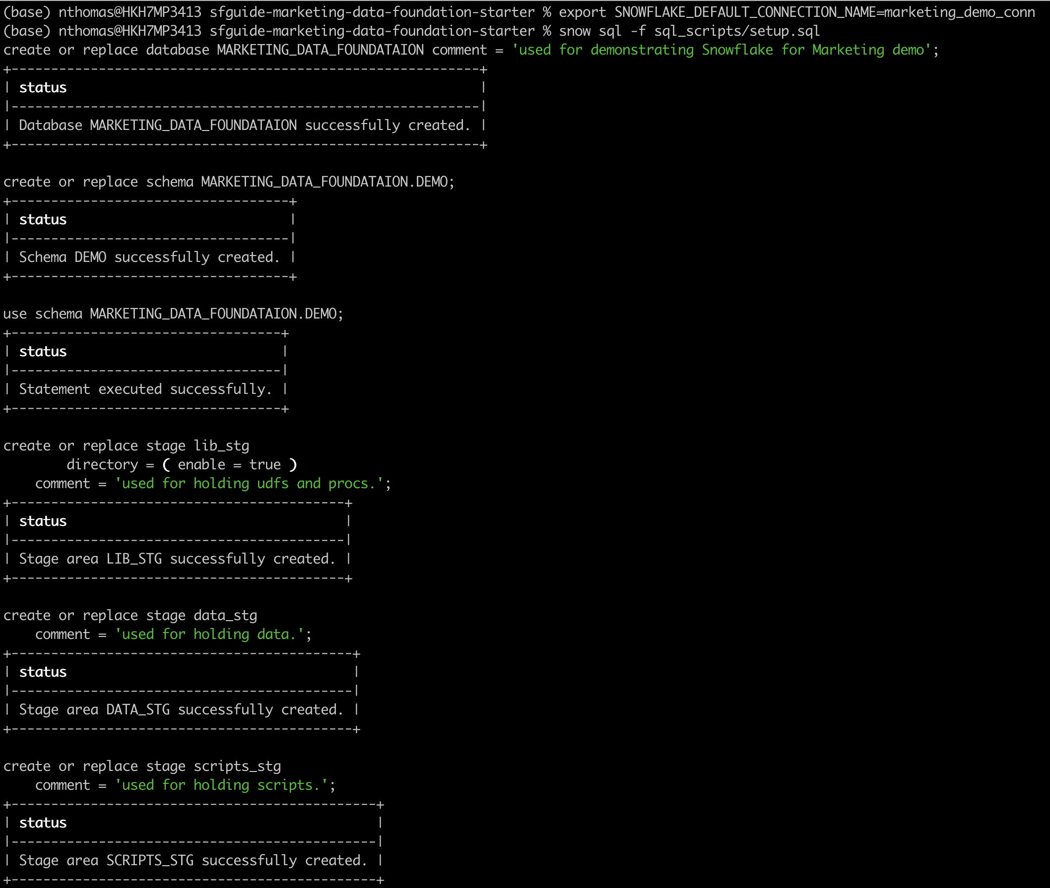 export SNOWFLAKE_DEFAULT_CONNECTION_NAME=marketing_demo_conn