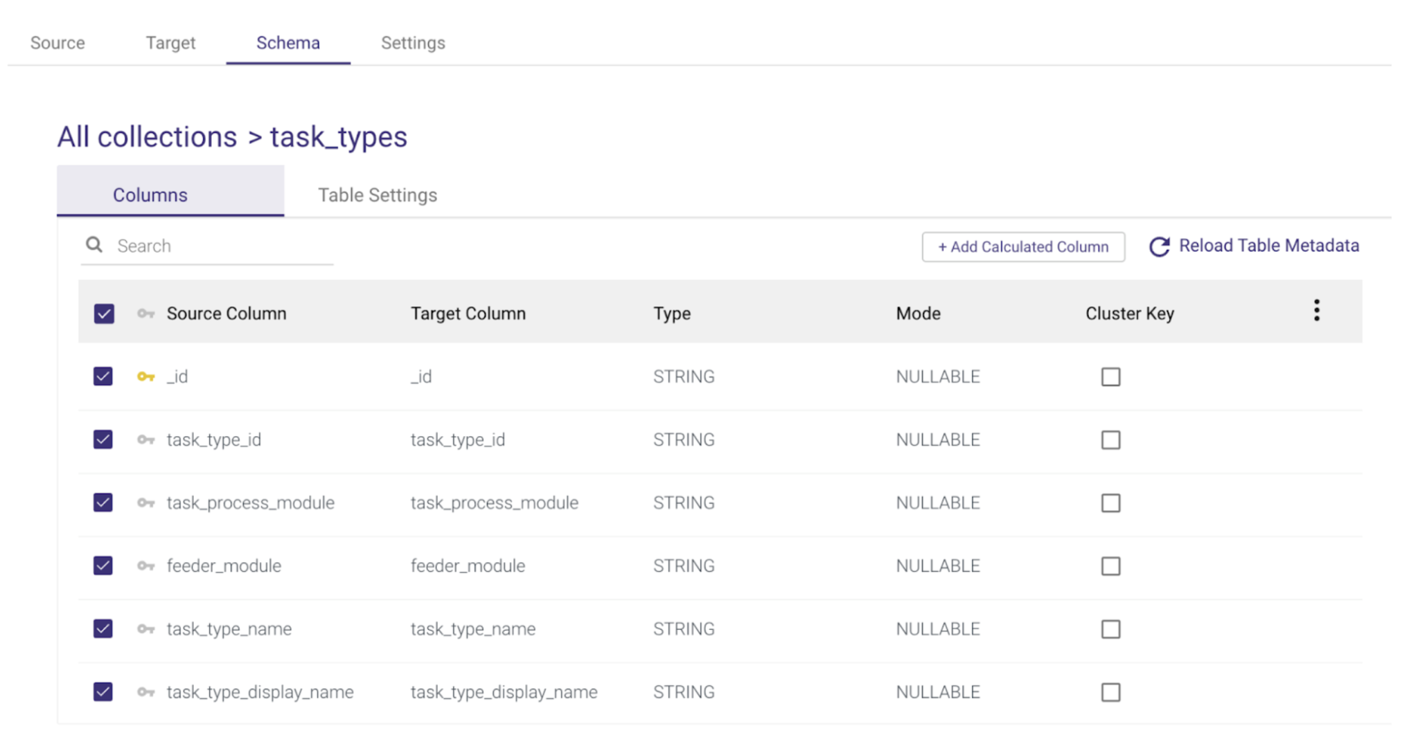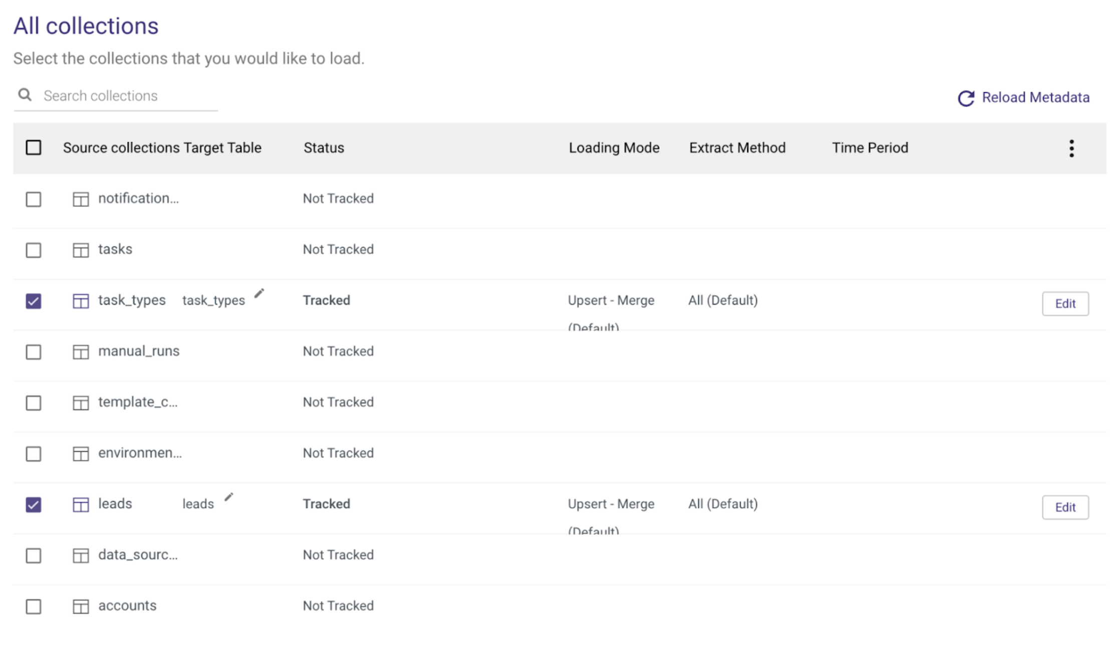 Clicking on the Schema tab you’ll be able to select the specific collections that you want to extract/load.