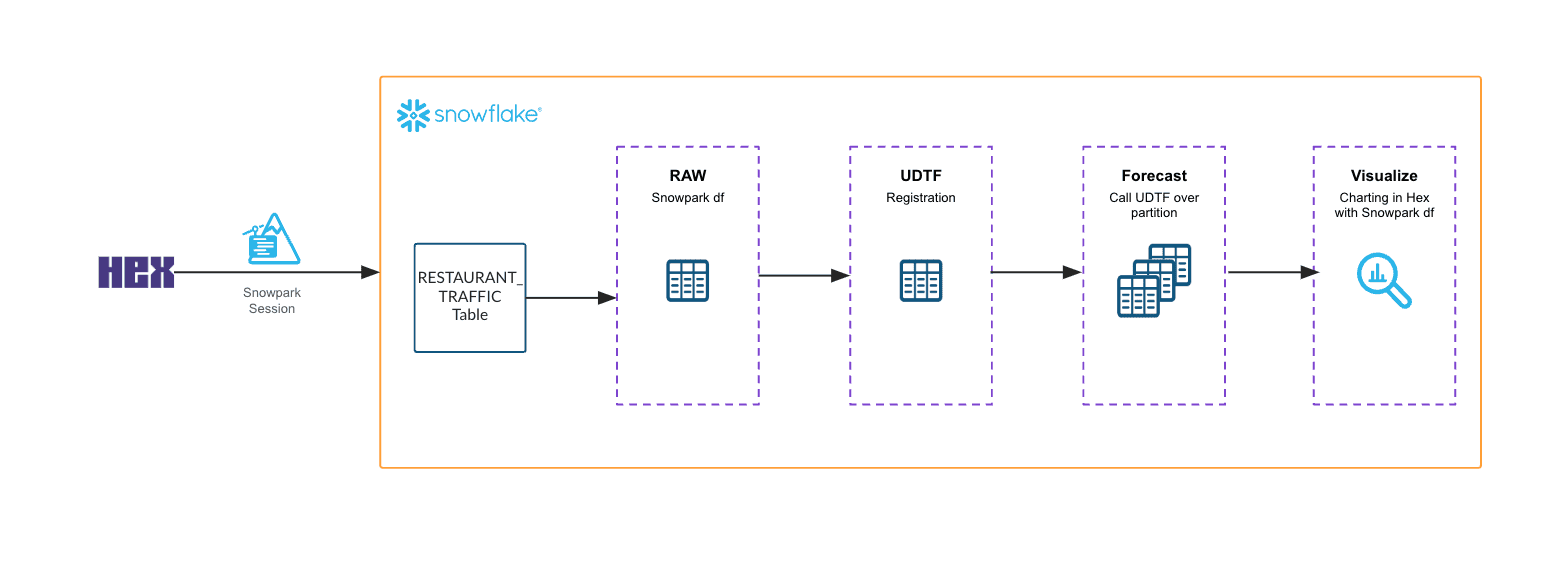 - Run pre-processing, feature engineering and selection, and model training using Snowpark