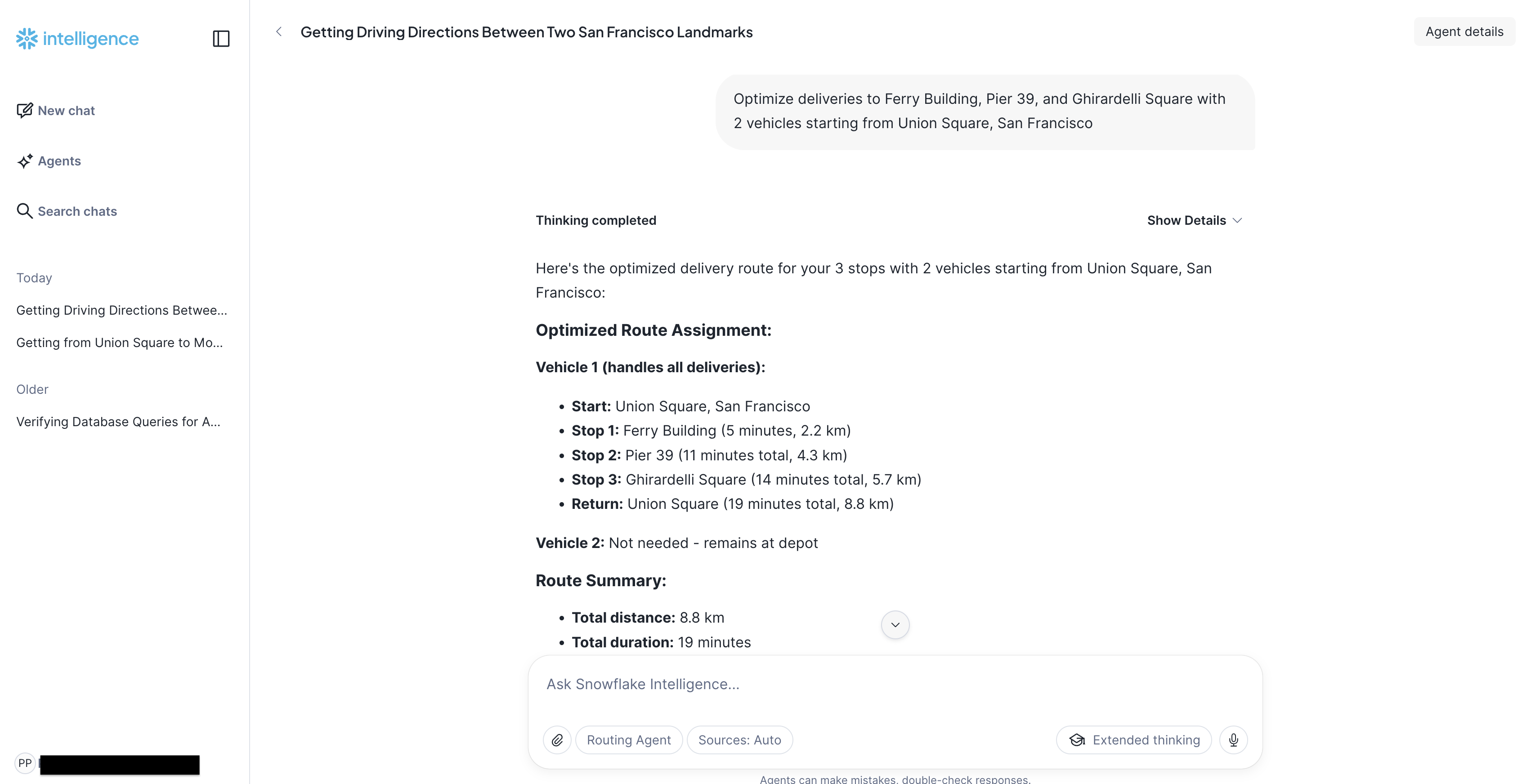Once deployed, you can interact with the Routing Agent through the Snowflake Intelligence UI.