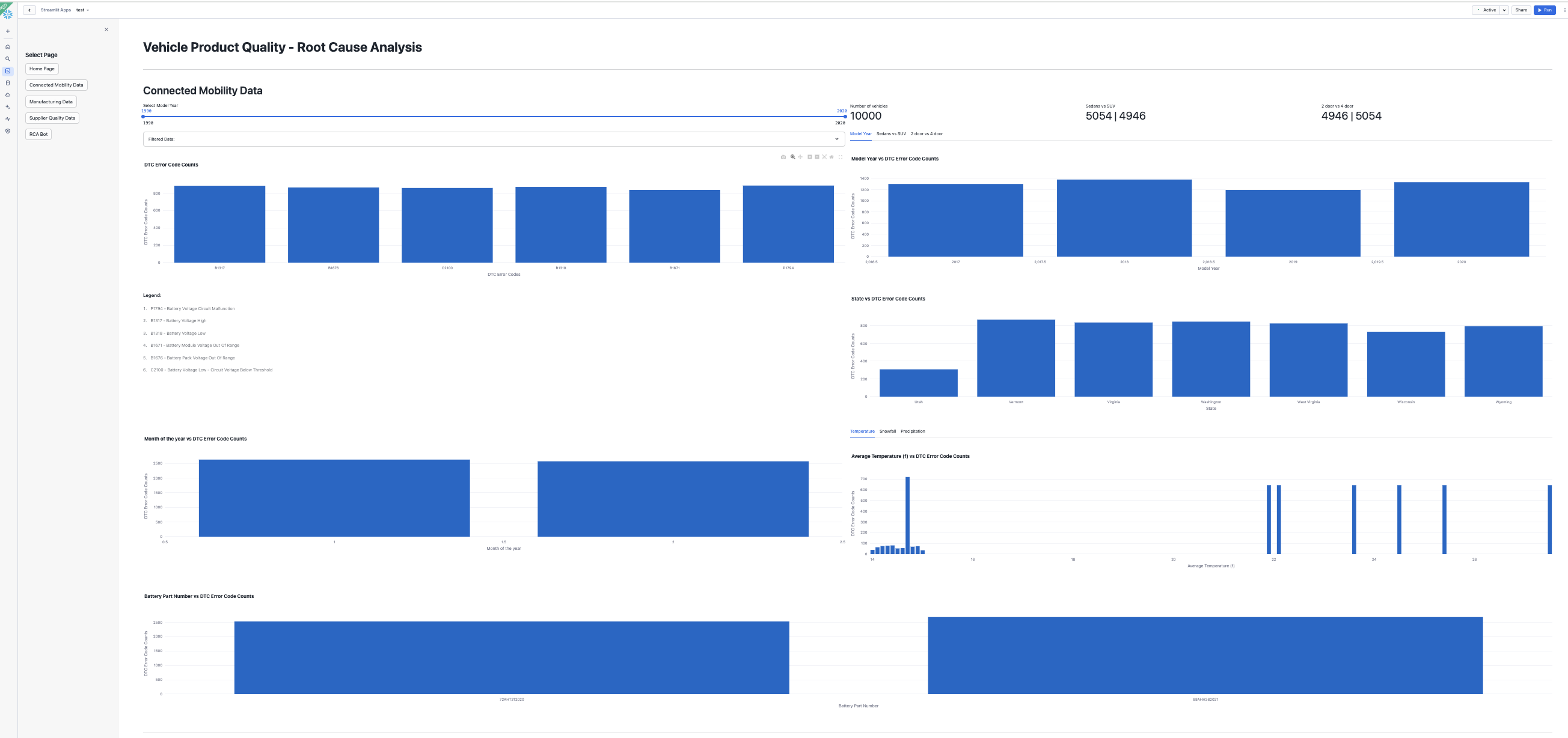 Each vehicle generates extensive telemetry data from thousands of sensors, which the onboard diagnostics systems translate into Diagnostic Trouble Code (DTC) errors—alerts that appear on the dashboard as warnings. For this use case, an OEM begins with DTC error data as an entry point for Quality RCA.
