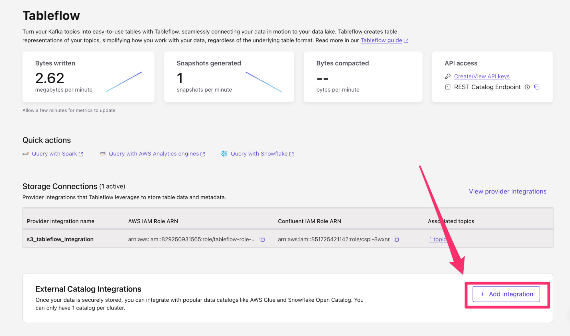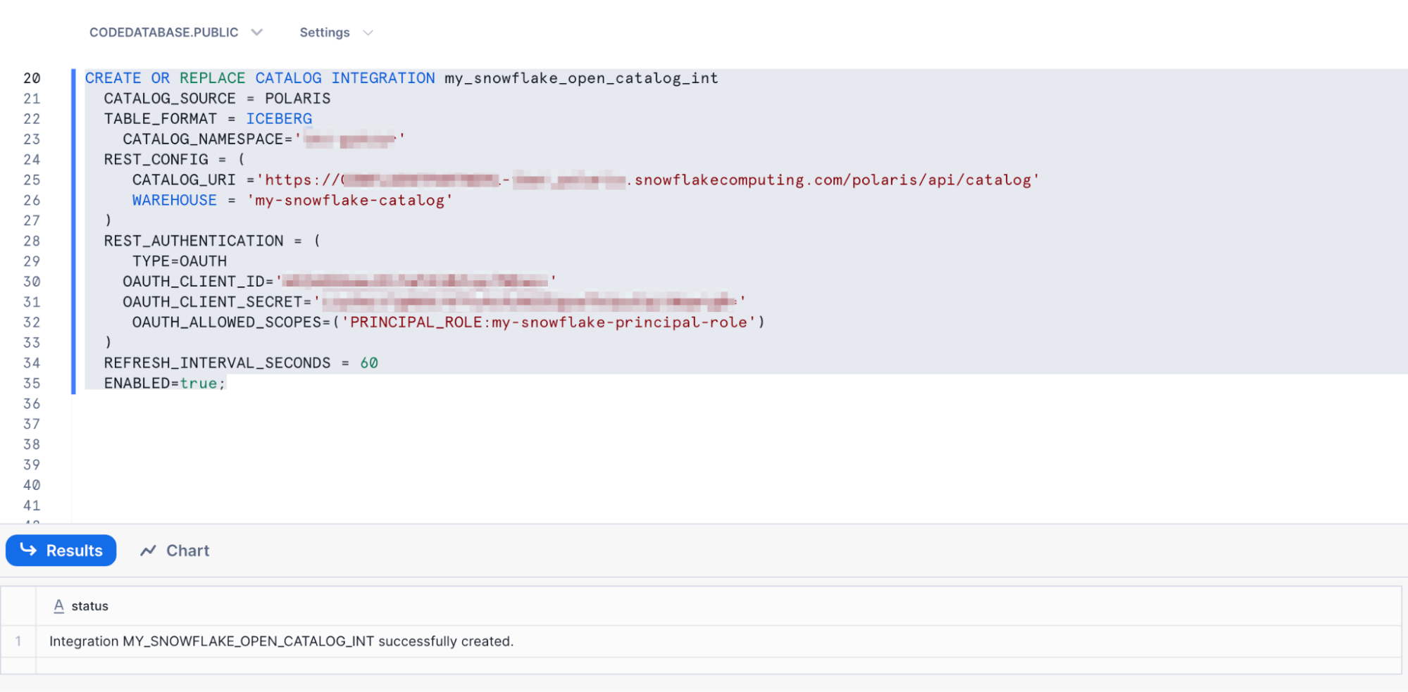 - After running the command, you should see that the catalog integration was successfully created.