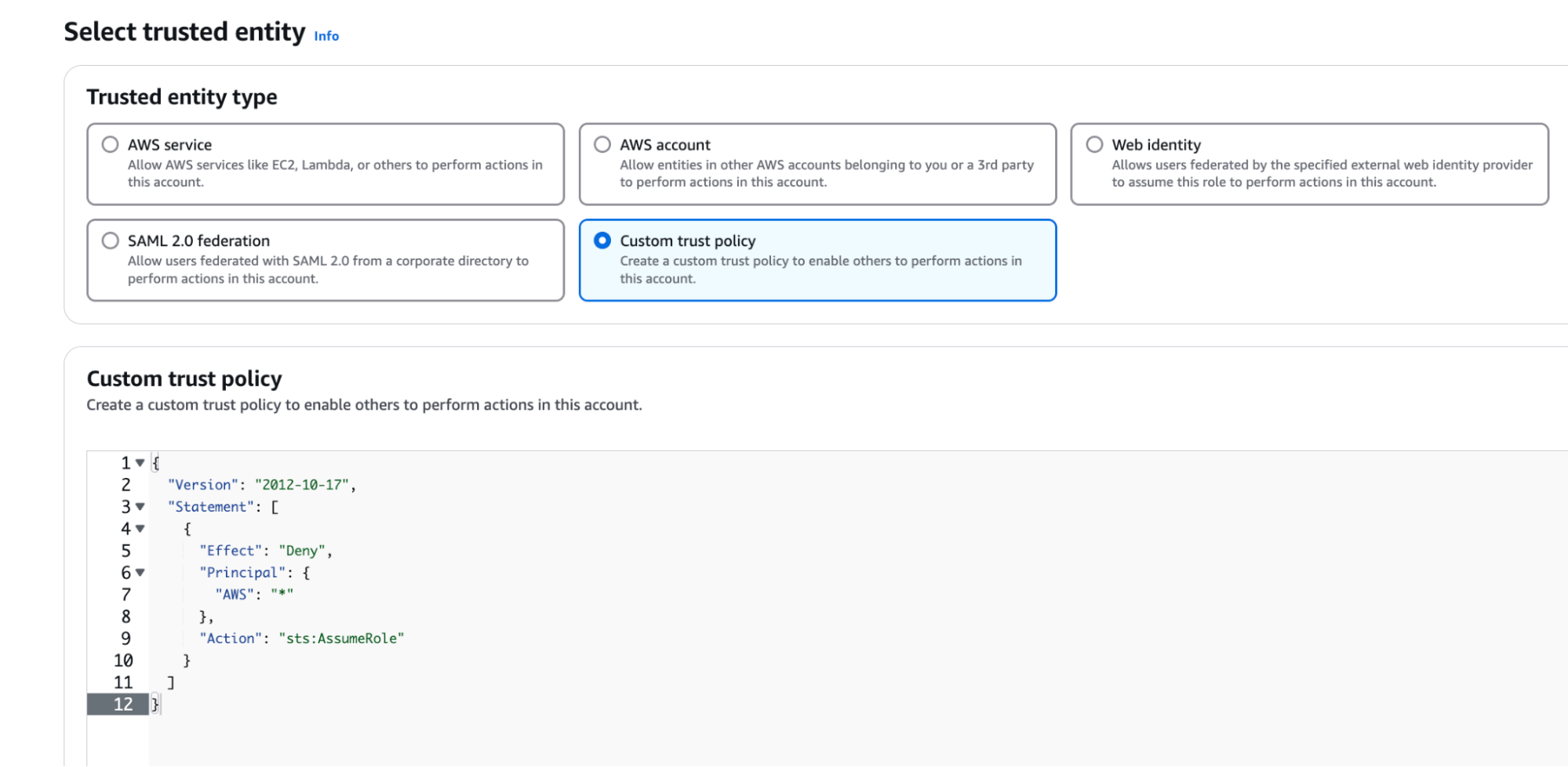 - From the Create Policy screen, switch to the JSON editor