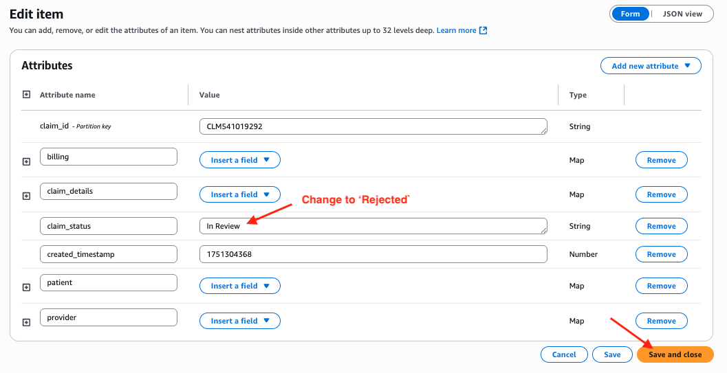 Modify Claim Status in DynamoDB