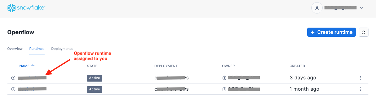 A Snowflake role that can access or create Openflow runtimes