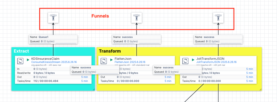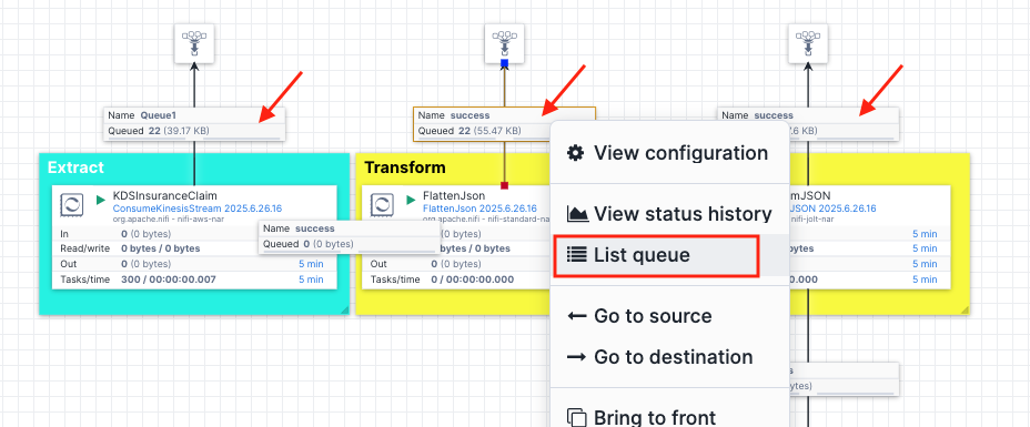 ConsumeKinesisStreamthat listens to the CDC events in the Kinesis data stream and extract them. - Transform: We use a couple of transformation processors (
