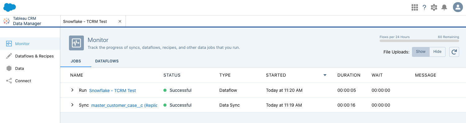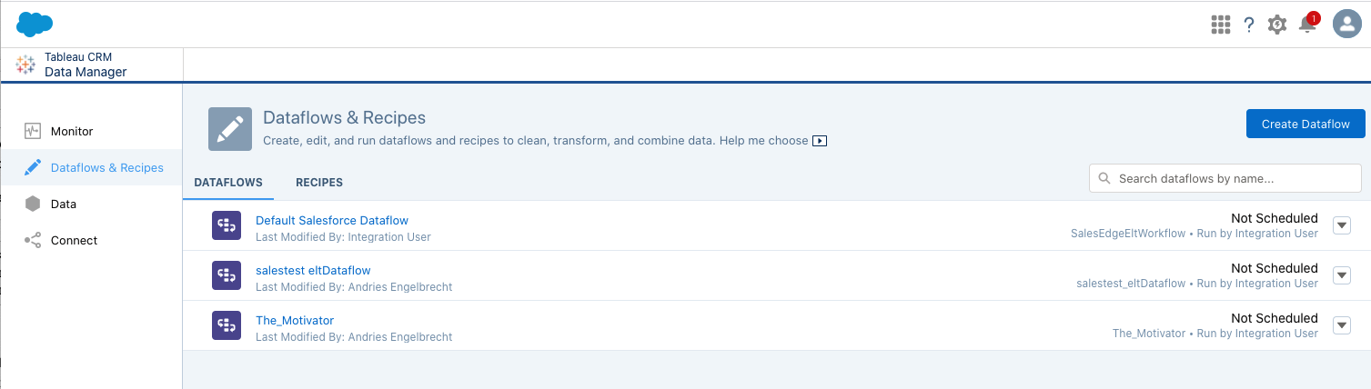 Switch back to your Salesforce Tableau CRM Data Manager tab in your browser.