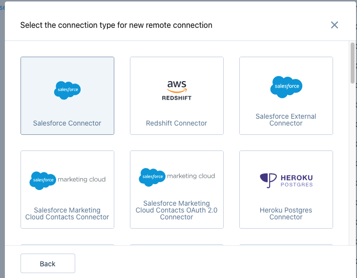 Once the sync ran successfully, click on Connect to Data → Input Connection → Click on + and select Salesforce Connector.