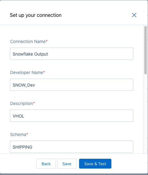 - Connection Name - Snowflake Output
