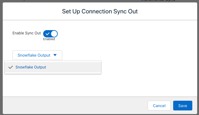 Check Enable Sync Out and select the Snowflake Output connection. Click Save.