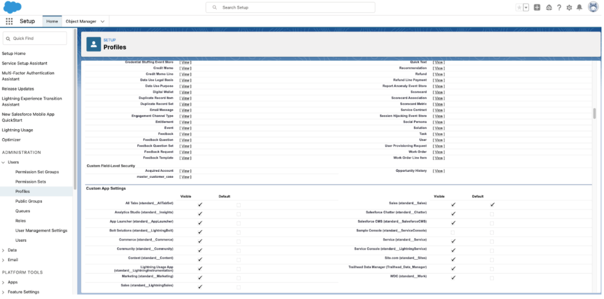 Scroll down and find “Custom Field-Level Security”.