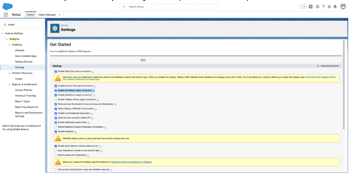 Configure Tableau CRM and Sync Salesforce data with Snowflake
