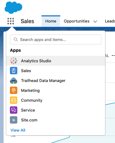 Go to Analytics Studio from the App Launcher.