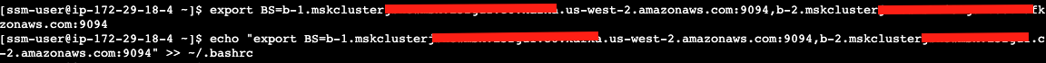 Start a new Linux session by following step 3 in the section named Create a provisioned Kafka cluster and a Linux jumphost in AWS