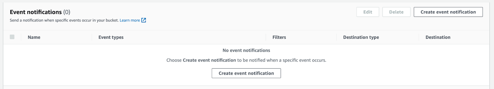 Target Bucket -> Open property -> Select “Create Event notification”