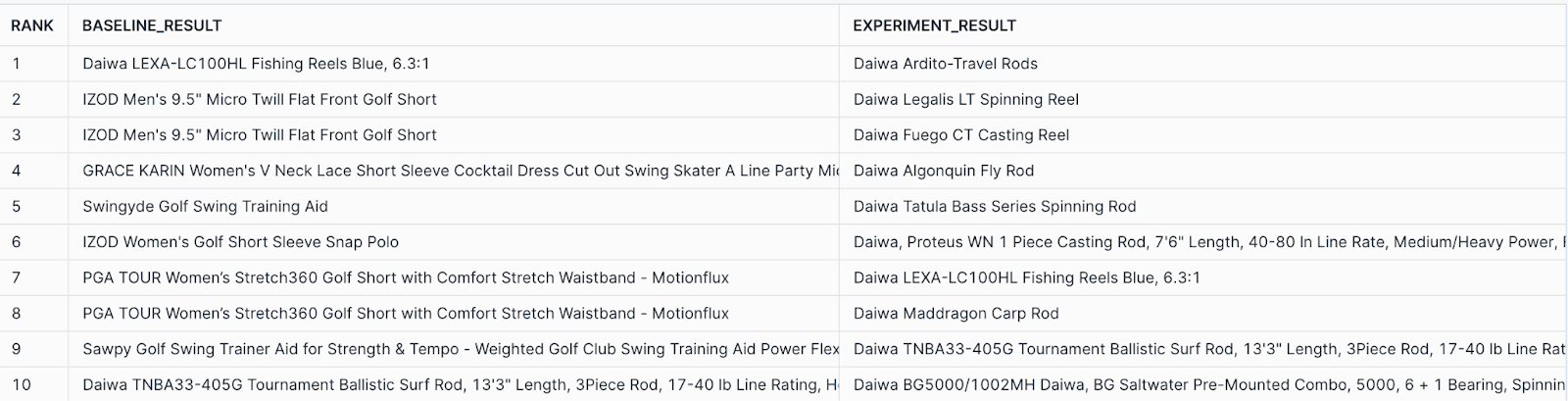 Notice how products with stronger engagement signals (i.e., high number of stars and ratings) rank higher in experiment compared to baseline. This reflects an important reality: While all these products may be relevant matches, products with more customer validation tend to be safer recommendations. The ranking incorporates: