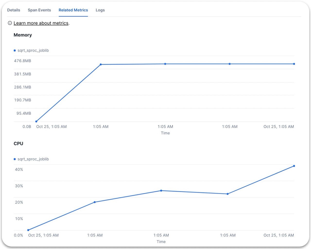 Looking at the CPU metrics reported for the procedure, the joblib-parallelized procedure also has much better CPU utilization.