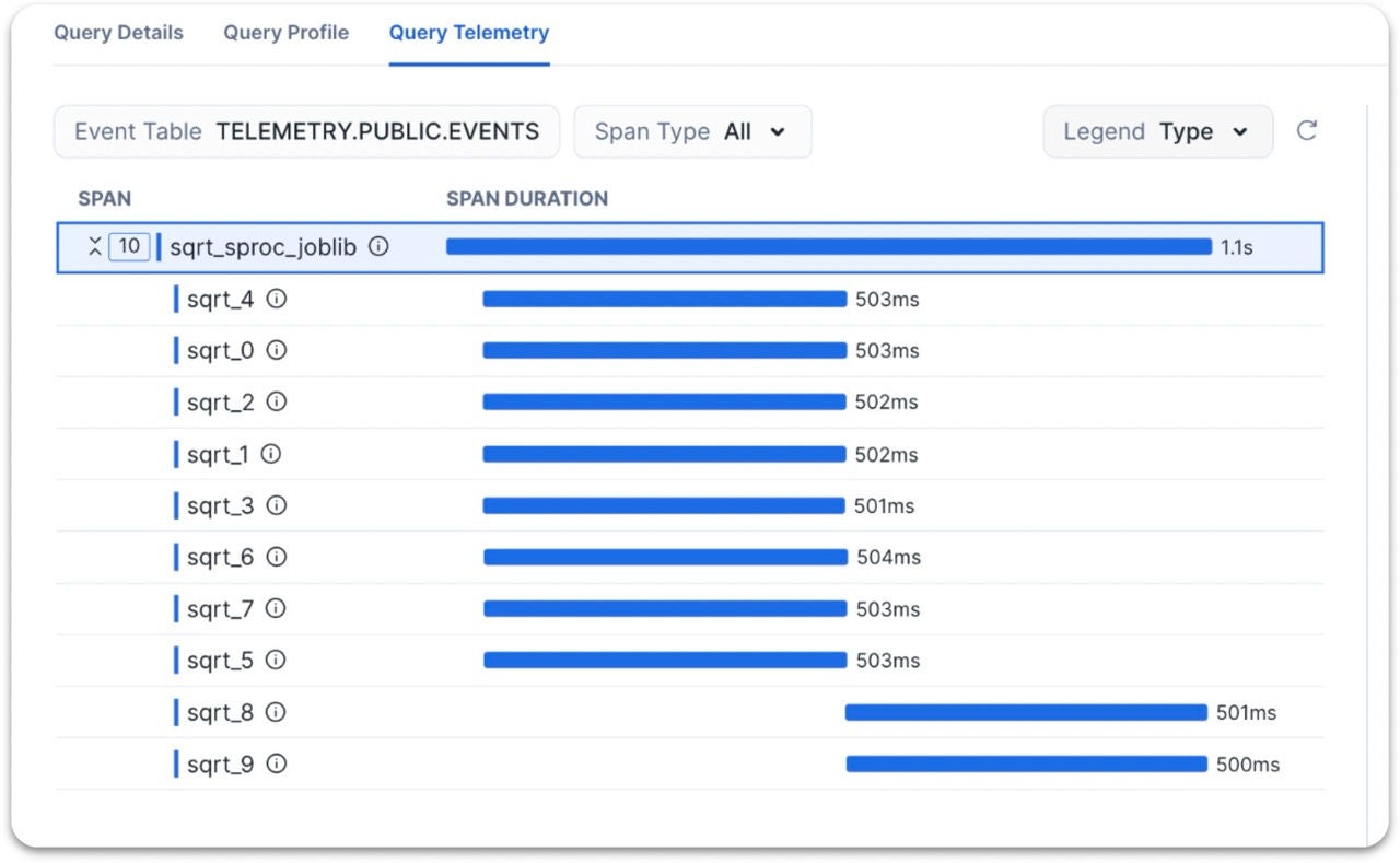 In this blog post, we explored how distributed tracing is implemented in the context of Snowpark and how to use auto-instrumented telemetry within the Snowsight interface to monitor and optimize data workloads within Snowflake. These features are just the beginning of improving observability. Our goal is to enable users to effortlessly gain insights into the various data-processing tasks running on Snowpark.