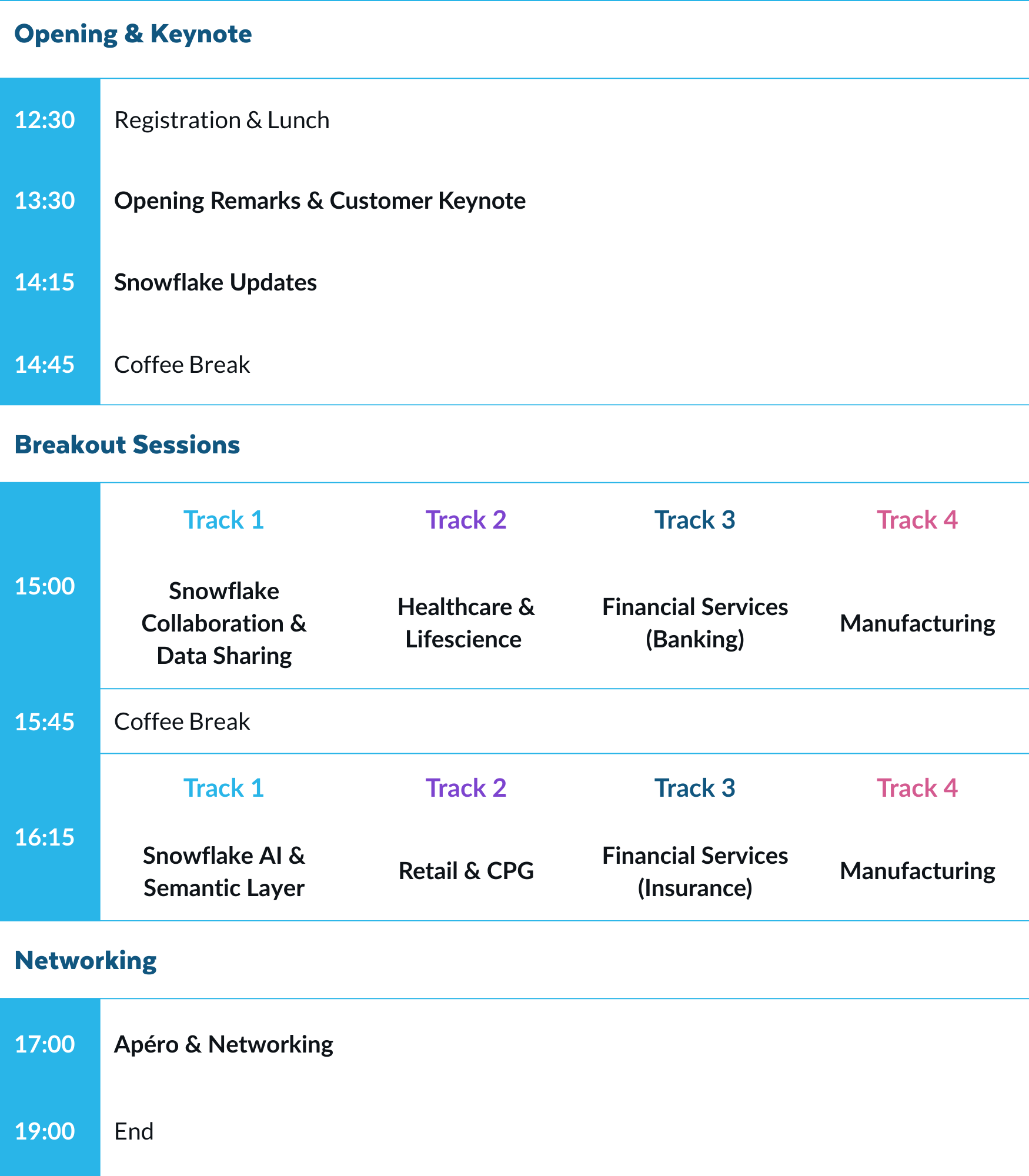 Join us in Zurich to discover how the Snowflake AI Data Cloud is reshaping the future of businesses across Switzerland. This event is your chance to gain both a strategic overview and a deep, technical understanding of what’s next in the world of data – both for decision-makers and practitioners.