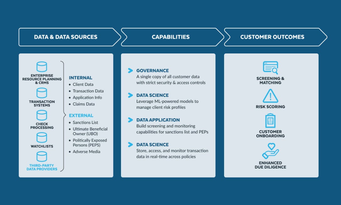 Minimizza il rischio reputazionale e finanziario riunendo i dati provenienti da tutti i tuoi business e applicando l’AI/ML per individuare potenziali frodi e facilitare la conformità alle disposizioni in materia di adeguata verifica e antiriciclaggio.