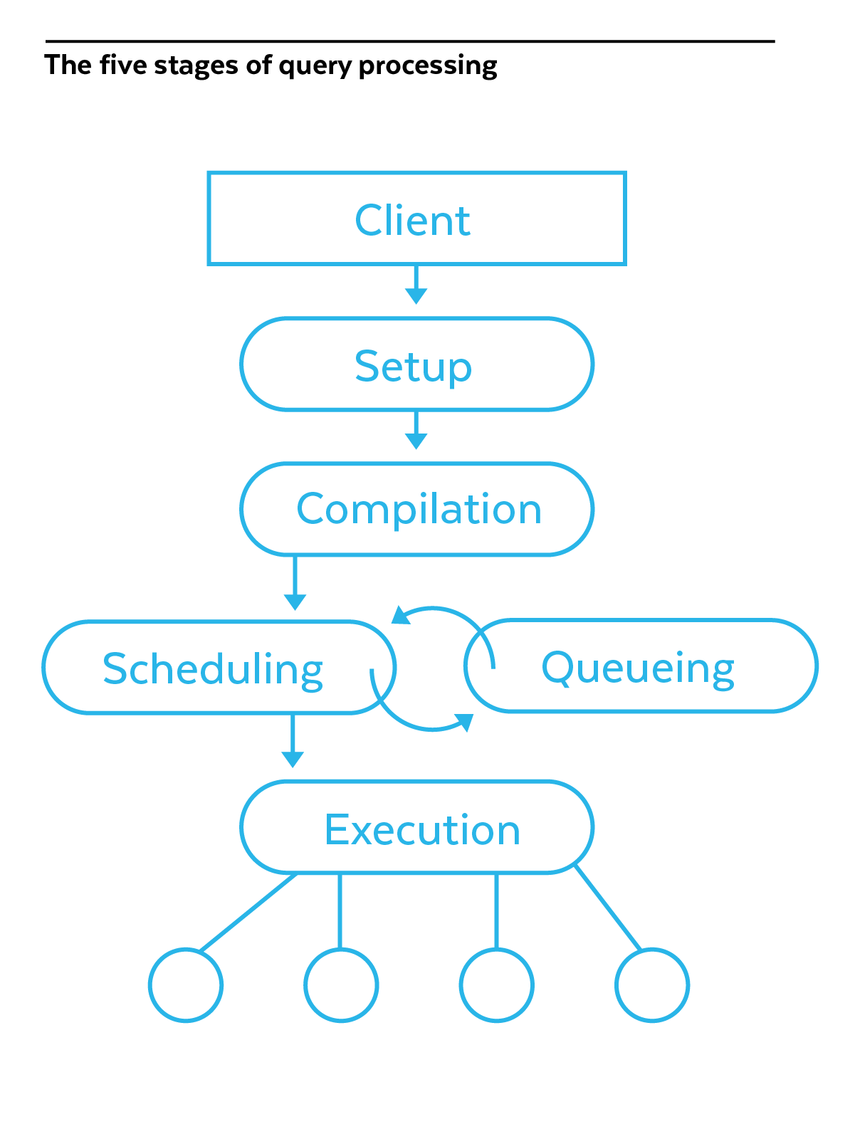 - キューイング:実行に必要なリソースが不足していた場合、クエリは待機状態(キューイング)になる場合があり、実行に向けて再度スケジューリングフェーズに戻されます。