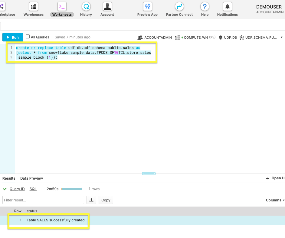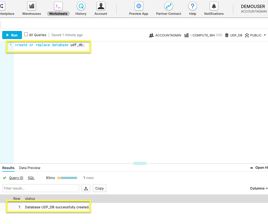 필요한 데이터베이스 오브젝트가 생성되었으니 다음 섹션에서 UDF로 작업하는 메인 수업으로 이동할 시간입니다.