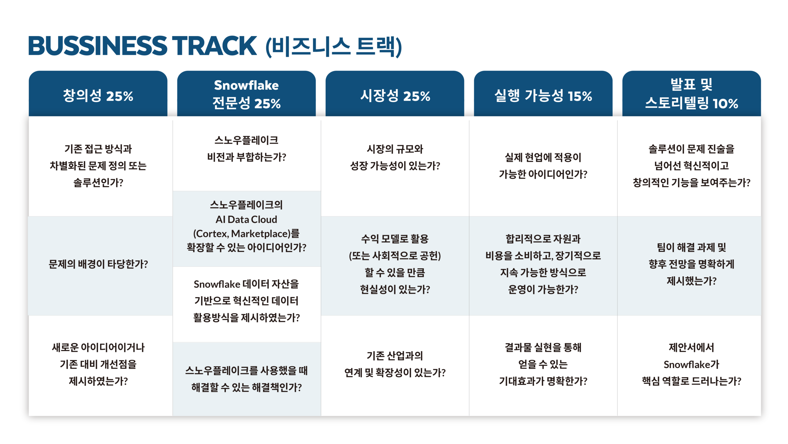 *테크 트랙, 비즈니스 트랙 모두 아래 동일한 템플릿을 사용합니다.